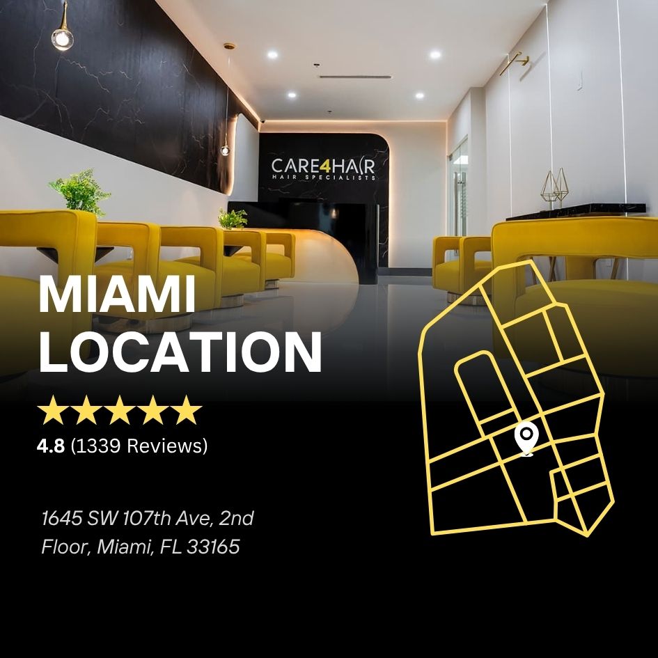 Care4Hair employs the most advanced techniques and technology for hair restoration available. Patients from Miami and around the world trust our team to help them choose from various hair loss treatment options. Whether your hair loss is caused by factors such as heredity, disease, or trauma, you can rest assured that the Care4Hair team will design a surgical treatment plan tailored to your precise needs so you can live with confidence once more!